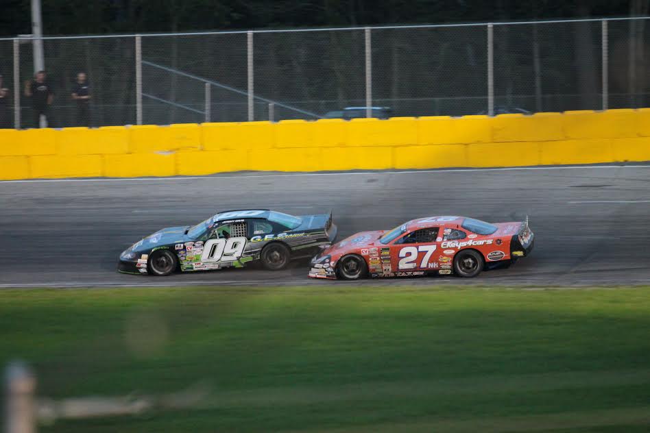 Helliwell, Jr. seemed to be the car to beat early, as the two-time American-Canadian Tour (ACT) champion shot out to a commanding lead. Jeremy Davis jumped to the second spot, and began to run Helliwell, Jr. down, before the first of ten cautions brought the field back together on lap 37. Helliwell, Jr. would fend Davis off on the first restart, but Davis would hold his own on the outside groove after a restart on lap 67. Barry Gray would slow in turn one and two bringing out the caution, just before Helliwell, Jr. and Davis would tangle, leaving Davis sideways in the infield. With Gray being the caution car, Davis and Helliwell, Jr. would get their spots back, setting up another battle.